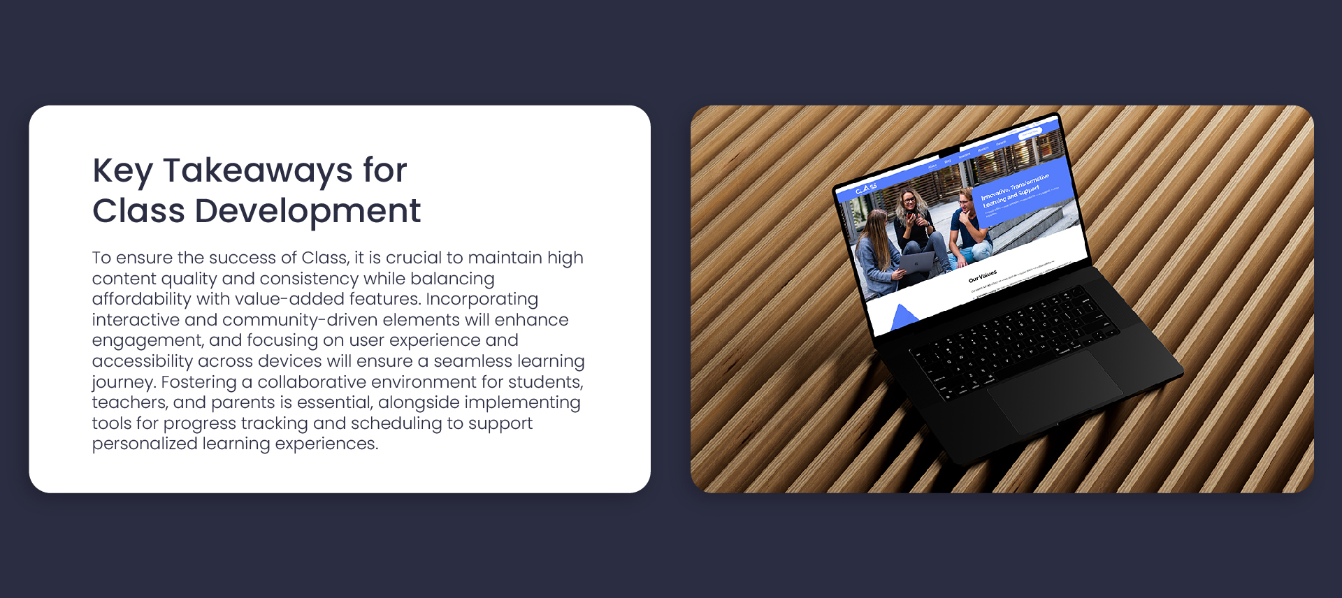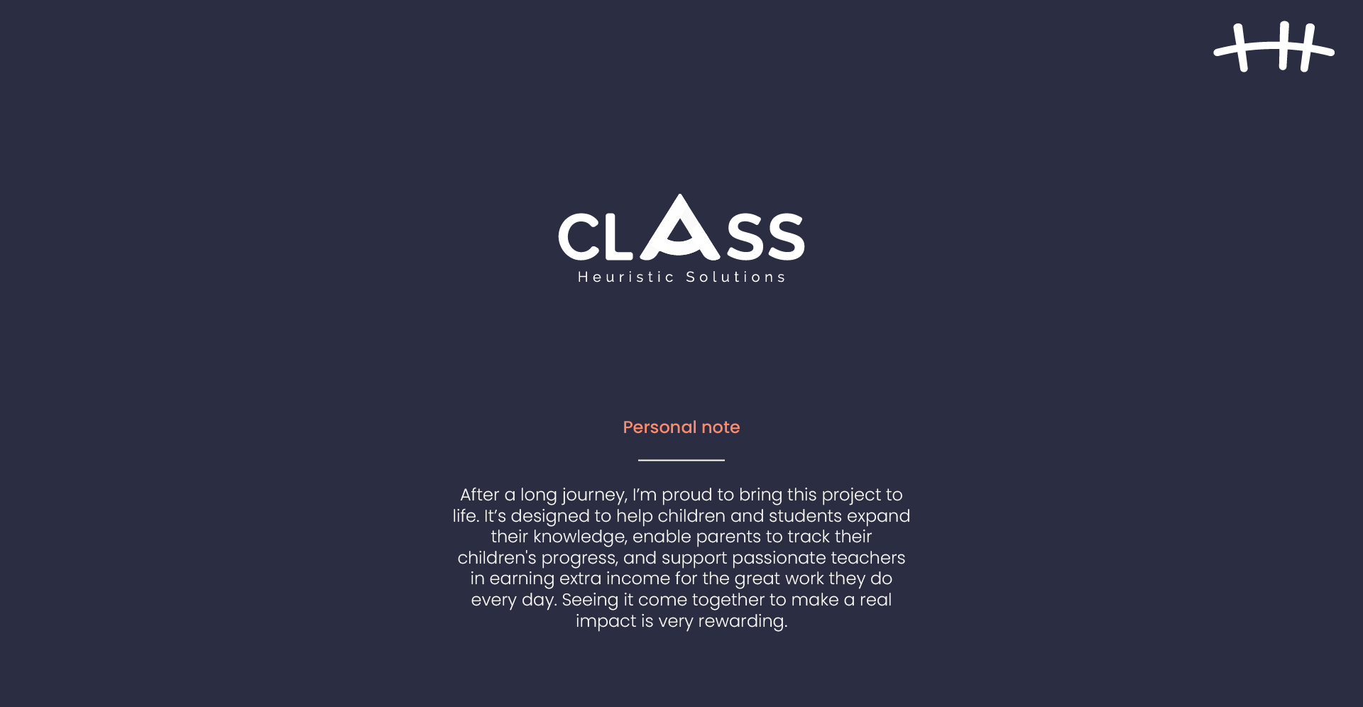 Class is an innovative e-learning platform designed to connect students, parents, and teachers in a seamless educational ecosystem. It allows students to schedule courses with qualified teachers across various subjects, fostering personalized learning experiences. Parents can easily monitor their children’s academic progress, track grades, and stay involved in their educational journey. For teachers, Class offers a flexible way to share their knowledge, manage classes, and earn additional income. The platform promotes collaboration, transparency, and growth, making education more accessible and efficient for everyone involved.